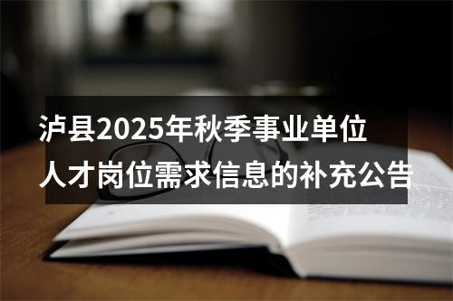 原标题:关于泸县2025年秋季事业单位人才岗位需求信息的补充公告
