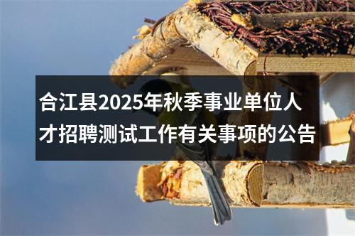 原标题:中共合江县委人才工作领导小组办公室合江县人力资源和社会保障局关于合江县2025年秋季事业单位人才招聘测试工作有关事项的公告