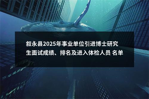 原标题:叙永县人力资源和社会保障局 关于公布叙永县2025年事业单位引进博士研究生面试成绩、排名及进入体检人员 名单、考察等相关事宜的公告