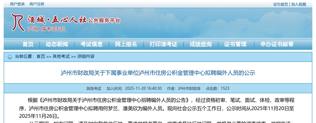 在线咨询 点击查看》》2025四川泸州市财政局下属事业单位泸州市住房公积金管理中心拟聘编外人员的公示