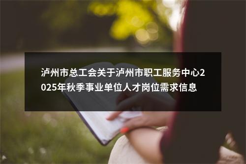 原标题: 泸州市总工会关于泸州市职工服务中心2025年秋季事业单位人才岗位需求信息的补充公告