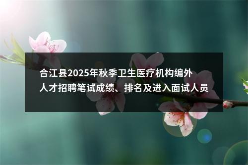 原标题:合江县卫生健康局关于合江县2025年秋季卫生医疗机构编外人才招聘笔试成绩、排名及进入面试人员名单的公告