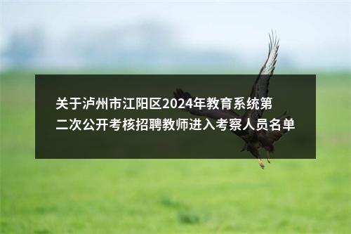 原标题:关于泸州市江阳区2024年教育系统第二次公开考核招聘教师进入考察人员名单及有关事项的公告