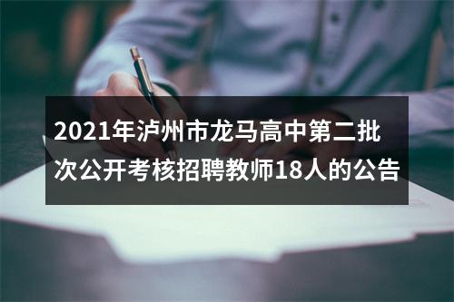 在线咨询 因工作需要,泸州市龙马潭区教育和体育局下属事业单位泸州市龙马高中将进行第二批次公开考核招聘教师,共计18名。现将有关事项公告如下。