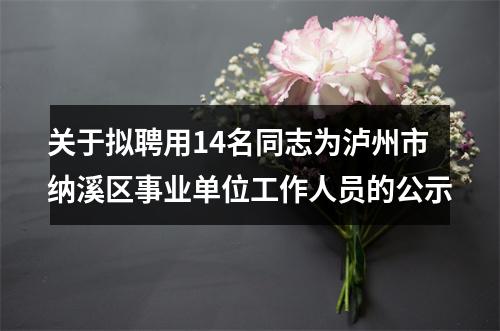 - 关于拟聘用14名同志为泸州市纳溪区事业单位工作人员的公示