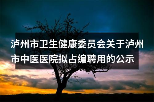 原标题:泸州市卫生健康委员会关于泸州市中医医院拟占编聘用的公示