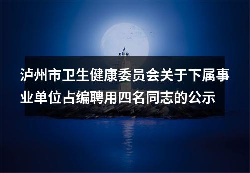 声明:专注 泸州市卫生健康委员会关于下属事业单位占编聘用四名同志的公示 相关岗位分析;专业指导面试技巧;保障就业成功概率。