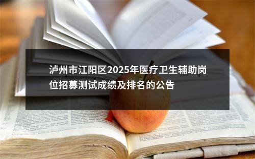 原标题:关于公布泸州市江阳区2025年医疗卫生辅助岗位招募测试成绩及排名的公告